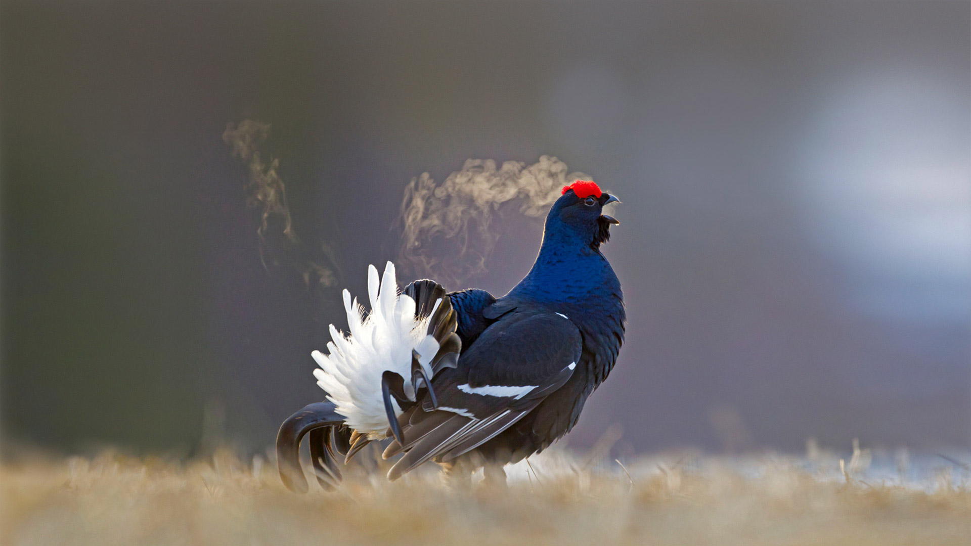 Black grouse male calling at a lek site in Kuusamo