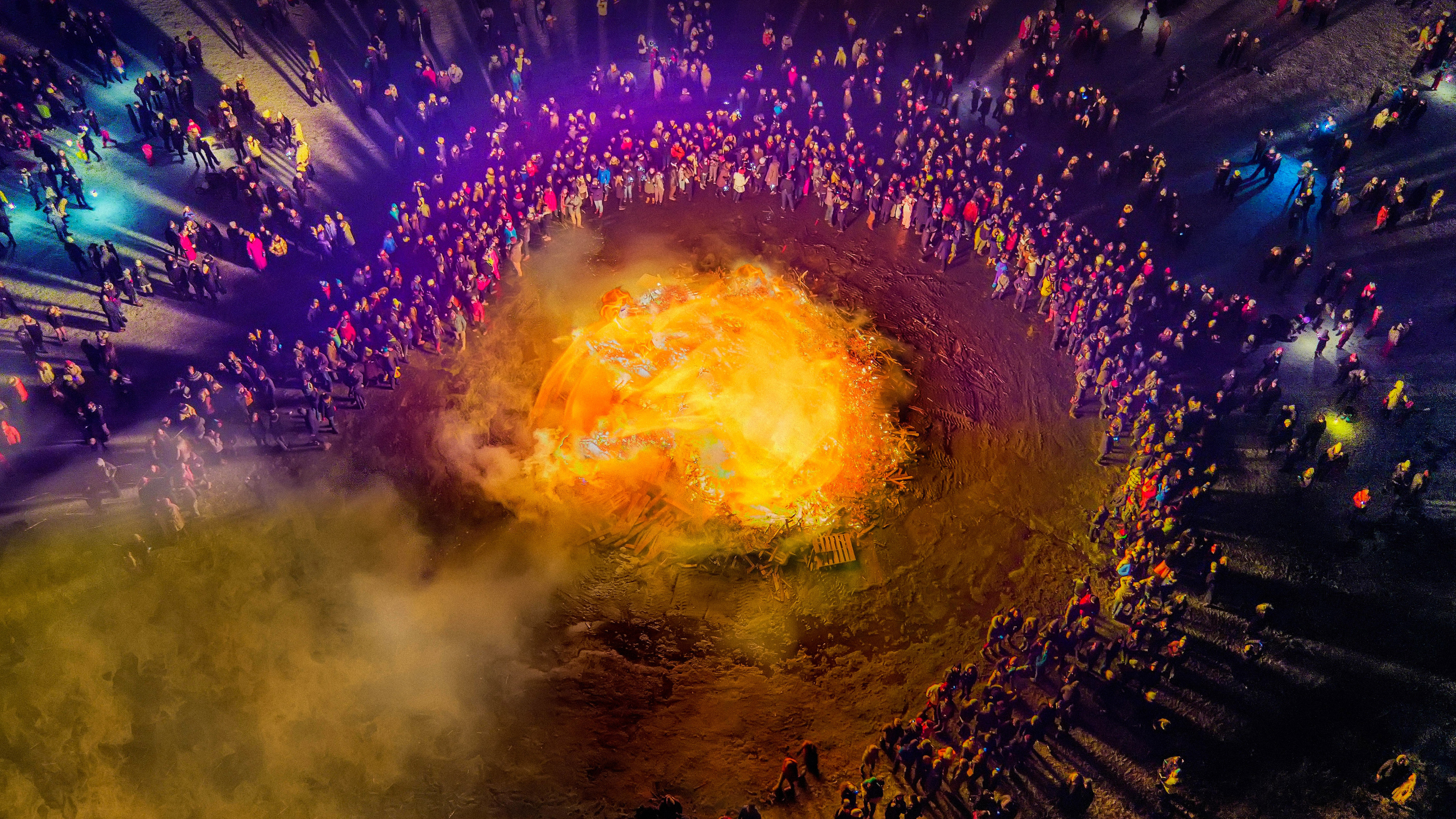 Bonfire to celebrate New Year's Eve in 2014 in Reykjavik, 冰岛 (© Ragnar Th Sigurdsson/Alamy)