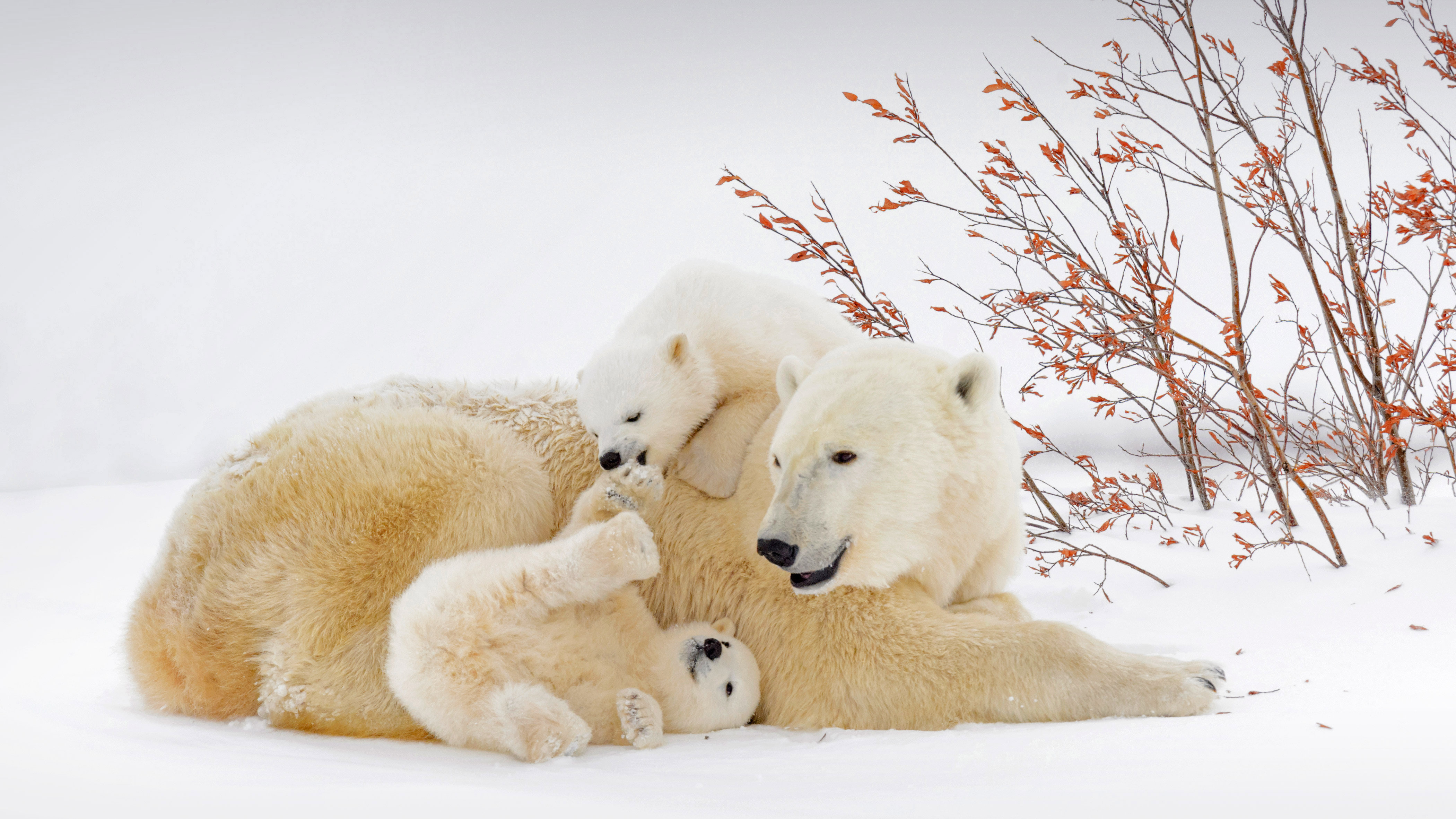Polar bear mother with cubs in Wapusk National Park, 马尼托巴, 加拿大 (© Andre Gilden/Minden Pictures)