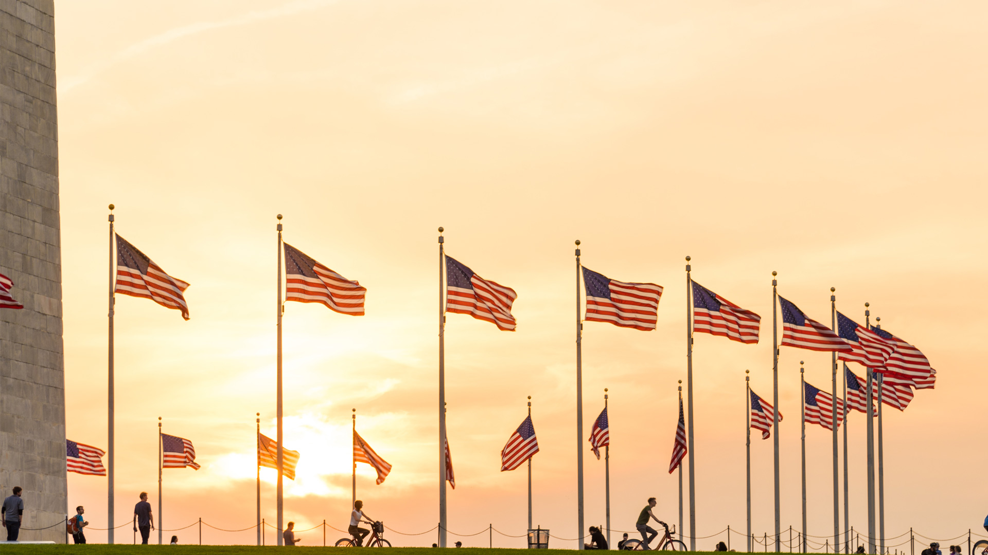 Flag display at the 华盛顿 Monument, 华盛顿, DC (© tristanbnz/Adobe Stock)