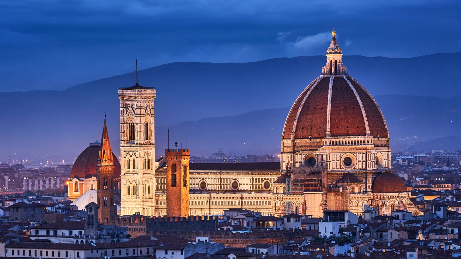 Duomo 圣玛丽亚 del Fiore at dusk, Florence, 意大利 (© Elena Pueyo/盖蒂图片社)